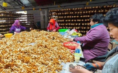 10月30日上午,兰店乡解放村解放农庄滑子蘑生产基地的大棚里,除了菌棒的清香,更满是此起彼伏的笑声。